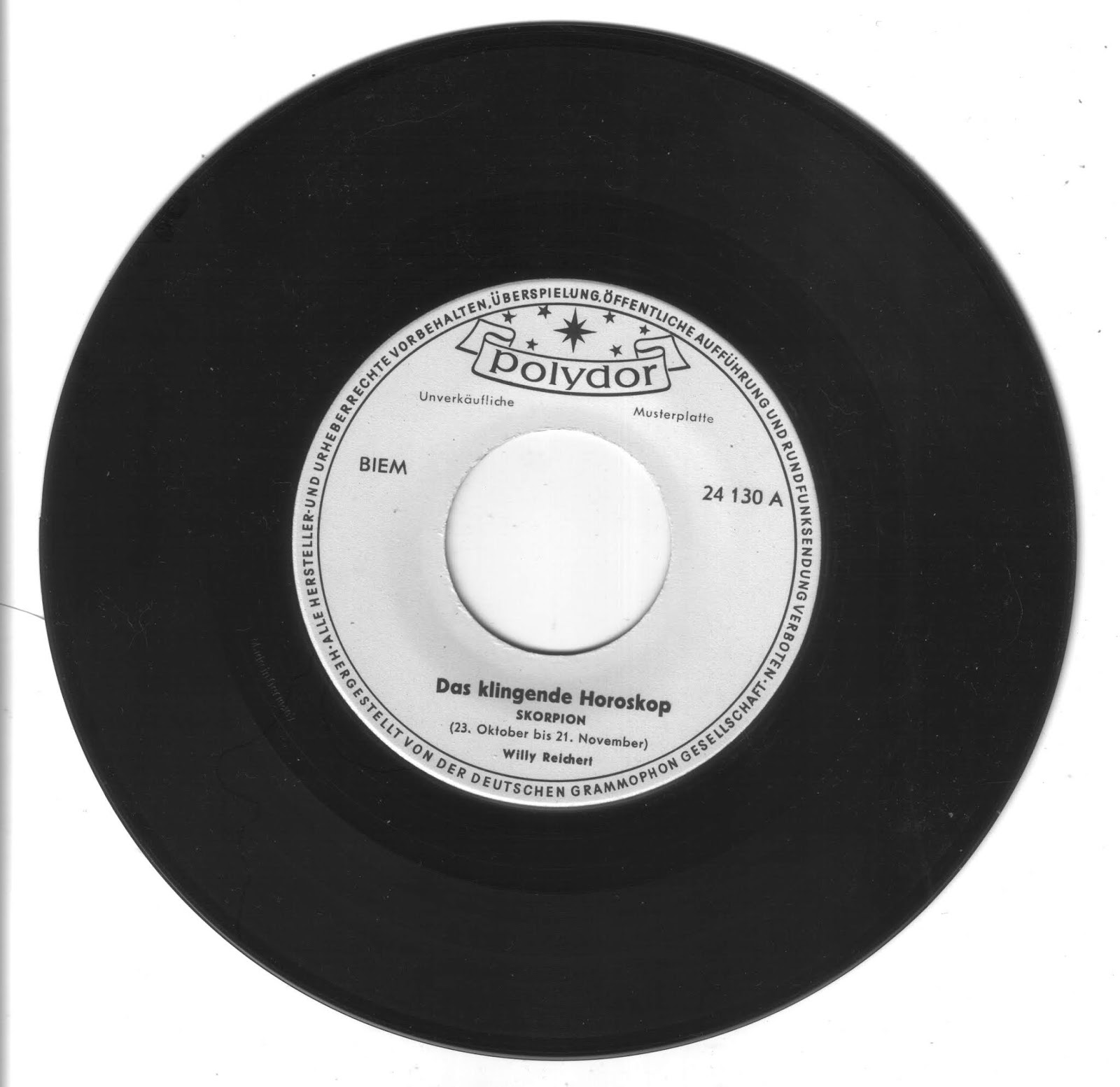 and lost burst least we have the stuttgart stand-up comedian willy reichert with hiss version of an alltime horrorscope for scorpios, recorded and released in 1959. the first two seconds of this record are absoloudelay great, but for the rest of it you must be more than familiar with the subtleties of the swabian lainguage and the skorpius zodiac sign. but i guess you are.