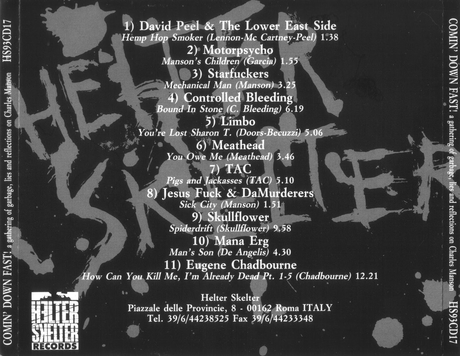 the compilation "comin' down fast" is a wonderful wooden reason to stand in line and to crash the sound. you'll get some noise by the likes of david peel, eugene chadbourne or controlled bleeding, enhanced with some bonus tracks i found in my collection.